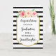 Félicitations pour votre carte de graduation pour petite-fille avec de belles fleurs d'aquarelle rose, rayures noir et blanc motif et vers sentimental.