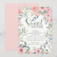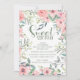 Soigné et élégant Sweet 16 invitations de fête d'anniversaire pour votre fête d'anniversaire printemps ou d'été. Belles fleurs d'aquarelle rose vif et des feuilles verts sauge sur une invitation blanche avec une police de script fantaisiste qui vient juste d'apparaître!