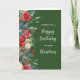 Joyeuse carte d'anniversaire de Noël avec un design rustique et feuillage d'hiver avec des poinsettias.