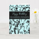 Carte d'anniversaire pour belle-fille avec design moderne de fleurs turquoise et noire et verset réfléchi.