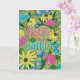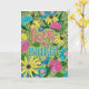 Carte Fleurs vert et rose fleuri heureux anniversaire