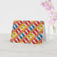 Cette pensée facilement personnalisée de votre carte présente un motif lunatique de tongs d'été aux teintes primaires de rouge, bleu et jaune alignés contre des rayures de sable lâche.