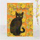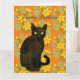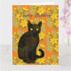 Peinture aquarelle d'un chat noir, fleurs en arrière-plan, Joyeux Anniversaire !