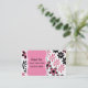 Jolie carte de mise en réseau de maman faite en fleurs roses et noires, sur un fond blanc. Les graphiques d'un secteur rose décoratif des textes, a le texte noir prêt à personnaliser. Le texte arrière et noir d'un rose solide, ajoutent plus de texte si vous voulez. La grande carte de regard de maman, celle est grande pour arranger des dates de jeu, avec d'autres mamans, et cages se reposantes de bébé.
