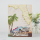 Magnifique carte illustrée de l'état de la Floride et des îles de la région dans un beau style vintage avec une voiture rétro des années 1950.