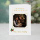 Real Gold Foil Accents Vacances carte photo est présenté avec un accent saint de Noël festif et avec un accueil de votre famille. Customisez cette carte et ajoutez votre photo et changez le texte de votre nom de famille. Customisez avec ce modèle. Image sous licence