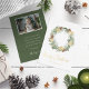 Cette carte d'hiver Joyeux Noël présente une aquarelle peinte à la main et de véritables pinecones en feuille d'or disposés comme une belle couronne. Le texte est brun et l'arrière - plan blanc. Le dos comprend une photo de famille et un texte pour la personnalisation. Trouvez les articles correspondants dans la collection Vacances de Noël Pinecone and Greenery.