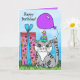 Mignonne main dessinée fantaisie style d'art folklorique chat, fleurs, cadeaux et ballons carte personnalisée.