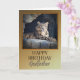 A birthday card for a Godfather showing a regal snow leopard lying in his cave.