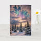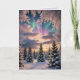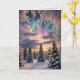 Cette carte présente une forêt hivernale enneigée la nuit avec des cristaux de glace et des aurores dans le ciel. Envoyez vos vœux de Noël à vos proches ! Texte et couleur personnalisés (à l'intérieur).
