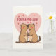 This greeting card shows two cute groundhog-like animals in warm brown tones sharing a gentle kiss inside a large pink heart. Their eyes are closed, their cheeks have a soft rosy blush, and their small arms are wrapped around each other in a close hug. The simple shading and smooth outlines give them a rounded look that feels sweet and calm. Above them, the words “FOREVER AND EVER” appear in red, hand-lettered script near the top of the card. Small red hearts are scattered around the background, adding extra romance and affection ❤️💌. The setting is a light cream backdrop that keeps the focus on the couple and the big heart frame. It’s a thoughtful choice for a partner or a close friend who matters a lot