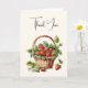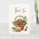 Carte de remerciements avec une ambiance estivale fraîche. Une jolie illustration avec des fraises fraîchement cueillies remplissant un pittoresque panier en osier.