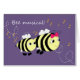 Cartes de notes sur le thème des abeilles et de la musique sur un arrière - plan violet. L'intérieur est vide pour ajouter votre propre message manuscrit. Choisissez la taille de la note ou de la carte de voeux. Les deux sont accompagnés d'enveloppes blanches.