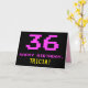 La façade de cette carte de voeux amusante, nauséabonde et geek sur le thème de l'anniversaire comporte un grand numéro rose "36", ainsi que le message "HAPPY BANTHDAY," en rose, et un nom de destinataire personnalisable jaune gras. Le texte a une apparence inspirée de celle des graphismes classiques de jeux vidéo et de jeux vidéo 8 bits des années 1970 et 1980, et le arrière - plan est noir de couleur. L'intérieur comporte un message de salutation d'anniversaire personnalisable, ou peut-être pourrait-il être effacé et laissé vide si un message doit être écrit à la main à la place. Une carte d’anniversaire personnalisable comme celle-ci pourrait être une façon amusante d’envoyer un message pour célébrer le trente-sixième anniversaire de quelqu’un. [~Z0000478]