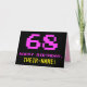 La façade de cette carte de voeux amusante, geek et naïve sur le thème de l'anniversaire comporte un grand nombre de "68" et le message "HAPPY BANTHDAY", couleur rose, ainsi qu'un nom de destinataire jaune gras modifiable. Le texte a un look inspiré de celui des graphismes vidéo/jeux vidéo 8 bits vintages des années 1970 et 1980, et le arrière - plan est noir de couleur. L'intérieur comporte un message de salutation d'anniversaire personnalisé, ou peut-être pourrait-il être effacé et laissé vide si un message doit être écrit à la main à la place. Une carte d’anniversaire personnalisable comme celle-ci pourrait être une façon amusante de reconnaître le soixante-huitième anniversaire de quelqu’un. [~Z0000478]