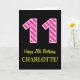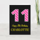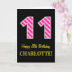Carte Fun rose rayé "11"; Joyeux 11e anniversaire; Nom