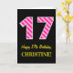 Carte Fun rose rayé "17"; Joyeux 17e anniversaire; Nom