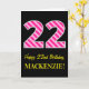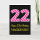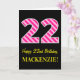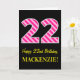 Carte Fun rose rayé "22"; Joyeux 22e anniversaire; Nom