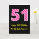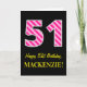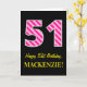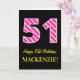 Carte Fun rose rayé "51"; Joyeux 51e anniversaire; Nom