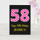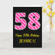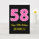 Carte Fun rose rayé "58"; Joyeux 58e anniversaire; Nom