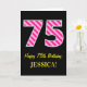 Carte Fun rose rayé "75"; Joyeux 75e anniversaire; Nom