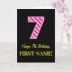 Carte Fun rose rayé "7"; Joyeux 7e anniversaire; Nom