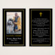 Une photographie de votre être cher est présentée sur cette carte de prière élégante. Il est bordé d'un cadre blanc simple, tandis qu'un cadre de parties scintillant doré entoure à la fois l'avant et l'arrière. Dans la mémoire aimante est écrit en or avec le nom de la personne décédée, les dates de vie et un message personnalisé ci-dessous. Une croix d'or est placée en haut. Il y a place pour un verset biblique préféré, la prière, le psaume ou le souvenir.