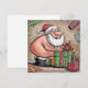 Un thème de Noël humoristique et décalé, mettant en vedette un Père Noël comique dans un état de déshabillage ludique et décontracté, portant seulement son casquette. L'arrière - plan se compose de répétitions d'éléments fantaisistes, tels que Père Noël dans diverses positions ludiques et des objets festifs comme des cadeaux et des elfes enveloppés, le tout dans un décor vert orné de flocons de neige, d'étoiles et d'éléments de décoration de Noël.