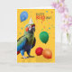 The Harlequin Macaw is a beautiful parrot that came to be by pairing a Blue and Gold Macaw with a Green-winged, creating a gorgeous and color parrot; and this one sends happy birthday wishes.