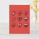 This eye-catching card features nine expressive heart characters arranged in a neat 3×3 grid on a bold red background. Each heart has a glossy, candy-like finish with dark outlines that give them definition and personality. Their faces show a wide range of emotions, from joy and surprise to worry and mischief. Subtle shadows beneath each heart add depth, making them appear slightly lifted from the surface. One heart laughs with delight, another looks startled, and one even shows tiny teeth for a humorous twist. A heart with a curled mustache adds a touch of charm and character. Together, these hearts turn a familiar symbol into a lively scene full of emotion, making this card a fun and memorable way to share Valentine’s Day wishes. ❤️