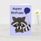Magnifique raton laveur avec ballon bleu fait un cadeau original et amusant. Parfait pour les anniversaires. Peut également ajouter du texte personnalisé et modifier la couleur de l'arrière - plan lors de la commande.