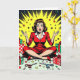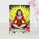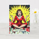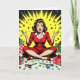 Looking for a funny Christmas card for a friend or family member? Add a little humor into their holiday season with this cute graphics and humor. A funny retro pop art woman sitting in a pile of Christmas gifts, wrapping paper, scissors and bows.