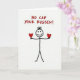 This greeting card features a simple stick figure drawn in black on a white background, placed near the bottom center of the card. The character has short, spiky hair and a wide, happy smile that feels friendly and upbeat. Its arms stretch out to the sides, and each hand holds a bright red heart, making the hearts the main pop of color. Above the figure, the card says “NO CAP YOUR BUSSIN!” in red, hand-drawn letters that look casual and a little uneven, like quick marker writing. The text sits across the upper area and ends with an exclamation mark, giving the message extra energy. With no background details, your eyes go straight to the hearts and the fun compliment, keeping the focus on affection and appreciation. It’s a light, modern way to say you’re into someone or you really admire them—perfect for a sweet note ❤️💌🍫.