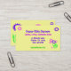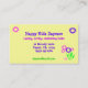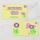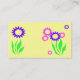 Ces carte de visite, appropriés gais et lunatiques à la garde ou après des buts d'école, caractéristiques une conception de fantaisie des fleurs roses et pourpres avec le feuille vert et des tiges sur un arrière - plan de jaune de beurre sur l'avant et le dos. Tout le texte peut être personnalisé pour adapter à vos besoins.