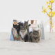 Le message sur cette carte dit : "Pas de soucis, nous sommes tous là pour vous. Va Bien Bientôt !" Cette carte de voeux unique "Get Well" présente nos cinq merveilleuses chattes secourues et adoptées qui s'assoient sur la table de la cuisine, à la recherche d'un régal. Avec les dix yeux verts qui vous regardent, cette carte de voeux est sûre de toucher les coeurs et de faire sourire les gens. Les chats, de gauche à droite sont les suivants : Ranger, Mauser, Caspien (à l'arrière), Zorro et Kimber.