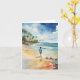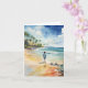 Cette carte de voeux comporte un portrait aquarelle d'un garçon qui descend la plage en marchant.