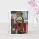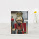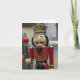 Cette carte de Noël colorée présente un garde casse-noisette avec une couronne dorée brillante, debout à l'extérieur d'une grotte. Le texte est modifiable si vous souhaitez le personnaliser.