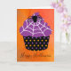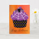 Cupcake mignon d'Halloween avec une araignée noire. Couleurs thématiques noir et orange. Thème araignée violette mignonne.