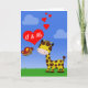 Une illustration mignonne et colorée avec une girafe et un papillon avec des cœurs rouges.