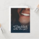 Glücklich steht Dir intestin ! Kompliment Karte mit lachendem Frauengesicht und handschriftlichen Grüßen auf der Vorderseite der Karte. Restliche Flächen stehen zur freien Verfügung.