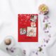 Une élégante feuille d'or véritable 4 photo collage carte de faire-part de naissance de vacances à personnaliser avec vos photos spéciales encadrées en or, message de vacances, noms et statistiques de naissance. L'envers est en train de tomber des flocons de neige. Vous pouvez customiser la couleur arrière - plan pour correspondre à votre thème de vacances. Conçu par Thisisnotme©