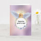 Une jolie couronne d'aquarelle ronde en faux or bordée de délicates fleurs d'aquarelle bleue et blanche a le visage d'un chien de repérage d'or qui regarde le bord supérieur. Le chien a de longues ailes d'ange allongées et un faux halo d'or et regarde vers le bas la formulation; le ciel a gagné un ange contre un arrière - plan céleste de ciel bleu et rose sombre. L'intérieur dit : "Ta vie a été une bénédiction, ta mémoire un trésor, tu es aimé au-delà des mots et tu as manqué au-delà des mesures. Je te tiendrai dans mon coeur jusqu'à ce que nous nous retrouvions au paradis