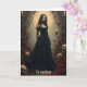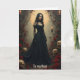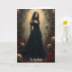 Une pleine lune brille derrière une femme en noir, au milieu des crânes, des fleurs et des bougies. Une belle carte d'anniversaire gothique pour une tante, ou n'importe qui ; le texte sur le devant peut être changé ou omis.