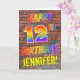 L'avant de cette carte de voeux vibrante, amusante et passionnante à thème d'anniversaire comprend le message "HAPPY 12TH BIRTHDAY" avec des lettres ayant un arc-en-ciel multicolore comme un motif dégradé, et un nom personnalisable couleur jaune, sur un arrière - plan motif mur de briques. L'aspect s'inspire de celui des graffitis ou de l'art de rue dessinés sur les murs. L'intérieur comporte un message d'anniversaire personnalisable. Une carte de voeux d’anniversaire amusante, heureuse et modifiable comme celle-ci pourrait être une façon spéciale de commémorer le 12e anniversaire de quelqu’un. [~Z0000357]