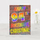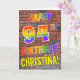 L'avant de cette carte de voeux captivante, passionnante et vibrante sur le thème de l'anniversaire comprend le message "HAPPY 94TH BIRTHDAY" avec des lettres ayant un arc-en-ciel multicolore comme un motif dégradé, et un nom personnalisable couleur jaune, sur un arrière - plan motif mur de briques. L'aspect est inspiré de celui des graffitis ou de l'art de rue dessinés sur un mur. L'intérieur comporte un message d'anniversaire qui peut être customisé. Une carte de voeux d'anniversaire amusante, heureuse et customisée comme celle-ci pourrait être donnée à quelqu'un qui célèbre son quatre-vingt-quatorzième anniversaire. [~Z0000357]
