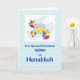 Célébrez l'Hanoukka de votre petit-fils avec une carte personnalisée juste pour lui ! Avec un arrière - plan bleu doux avec des points bleus légèrement plus foncés, cette carte présente un dreidel et des pièces d'or. Le front peut être customisé avec son nom, ce qui en fait un gardien unique. Cette carte exquise est une façon parfaite d'ajouter une touche personnelle à vos célébrations Hanoukka, ce qui fait que votre petit-fils se sent particulièrement spécial et aimé pendant le Festival des Lumières.