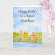 Bright spring colors and playful charm fill this watercolor Easter card, featuring a fluffy baby chick carrying a basket of colorful Easter eggs while a friendly bunny wearing a pink bowtie keeps watch nearby. Set among blooming pastel tulips, the scene captures the excitement and fresh spirit of the season. Thoughtfully created as a special Easter greeting for your grandson, this cheerful design sends warm wishes, smiles, and joyful holiday fun.