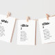 Ces cartes modernes de classement de places de table noire sont parfaites pour un mariage simple. Le design minimaliste noir et blanc présente une police rétro mais contemporaine, avec une atmosphère bohème rustique unique. Parfait pour toute saison. Gardez-le minimal, en l'état, ou ajoutez vos propres graphiques et illustrations. La carte s'imprime à l'avant et à l'arrière (double face).