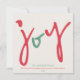 Ces cartes de voeux minimalistes de 5,25 po x 5,25 po présentent le message "joie" dans une grande police de caractères rouge et vert avec le message d'accueil modifiable supplémentaire, "Souhaitez-vous la paix, l'amour et la joie cette saison des Fêtes." Ajoutez simplement votre nom de famille et votre année.