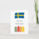 Carte d'anniversaire suédoise (födelsedagskort) avec le drapeau suédois, les célèbres monuments de Stockholm (Gamla Stan, Vieille Ville de Stockholm) et le message d'anniversaire suédois 'Grattis på födelsedagen', heureux anniversaire en suédois. Le message à l'intérieur de la carte dit "Grattis på födelsedagen".